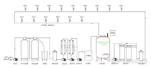 人民醫院中央分質用水系統中檢驗科制水設備供水量為500L/H。檢驗科室設11個用水點。
